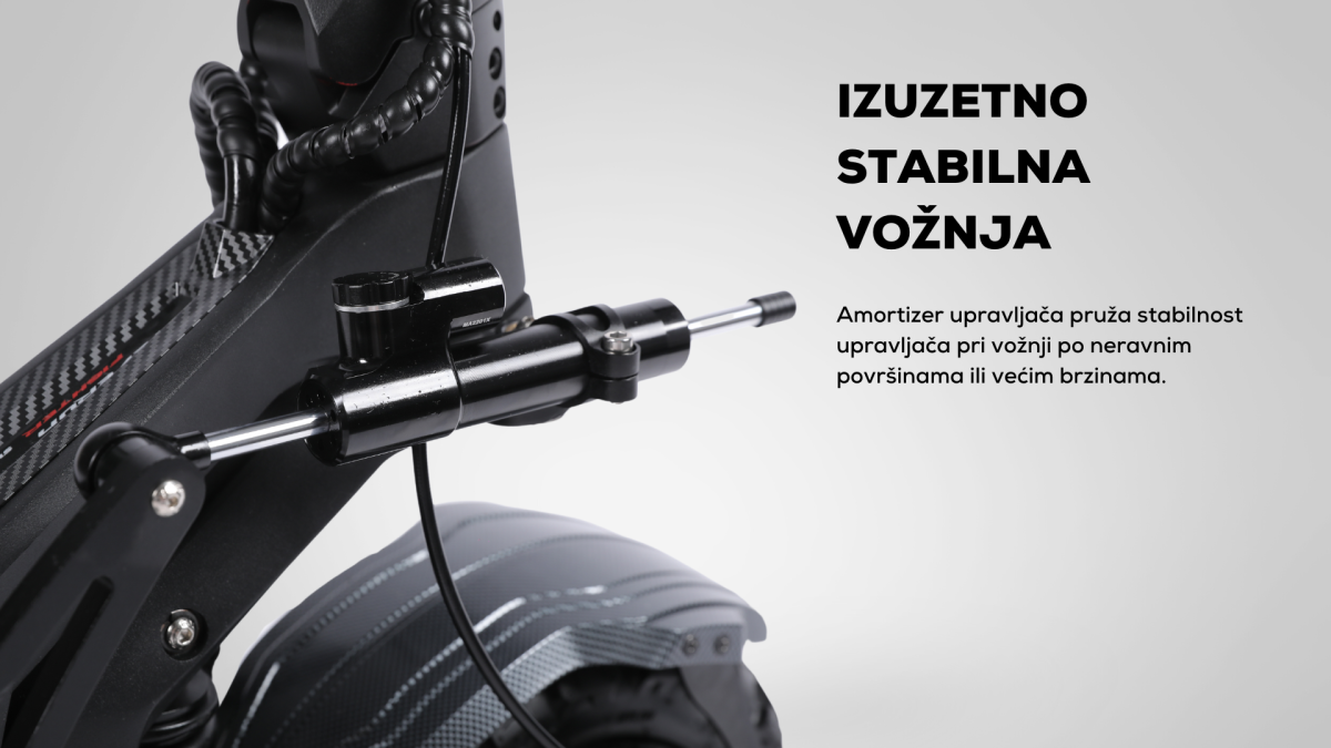 Sam električni romobil TEVERUN FIGHTER SUPREME težak je 45 kg , a pri transportu će pomoći i kuka na volanu koja se zakači za stražnji oslonac za noge – tako da će ovaj električni romobil biti lako podignut. Skuter ima nesklopivi volan, koji će pružiti osjećaj stabilnosti i sigurnosti tijekom vožnje, a neće se s vremenom olabaviti.